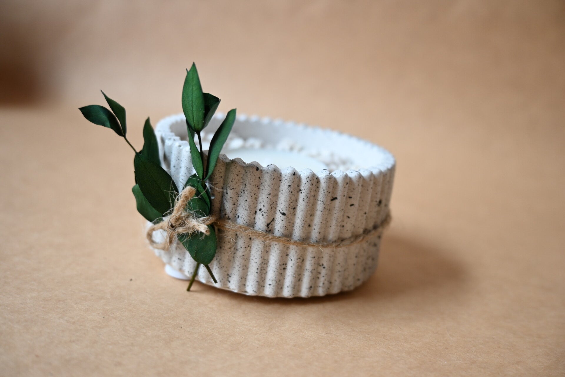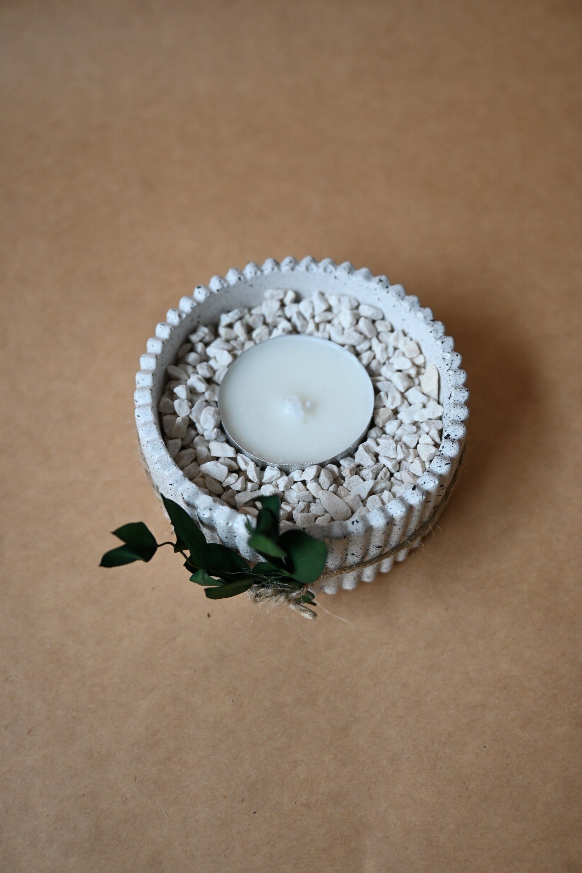 Gefüllt mit feinen Steinchen und einer zarten Kerze im Inneren, verbindet es Natürlichkeit mit modernem Design. Mit passendem Deckel wird es zu einem stilvollen, ruhigen Deko-Element für jedes Zuhause.