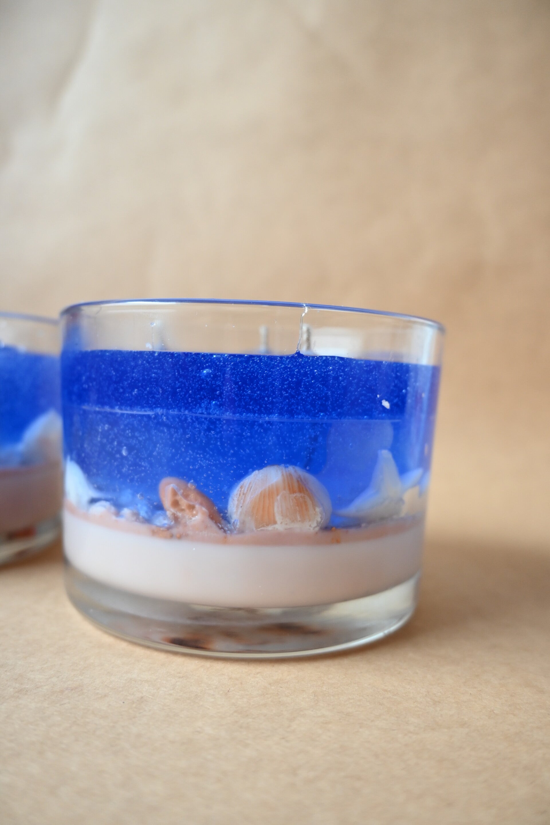 Gegossen aus blauem Geleewachs, mit Sand-ähnlichem Boden und kleinen Muscheln verziert, fängt sie die Ruhe und Schönheit des Meeres ein. Frisch, sommerlich und ein echter Hingucker für alle Strand- und Meeresliebhaber.