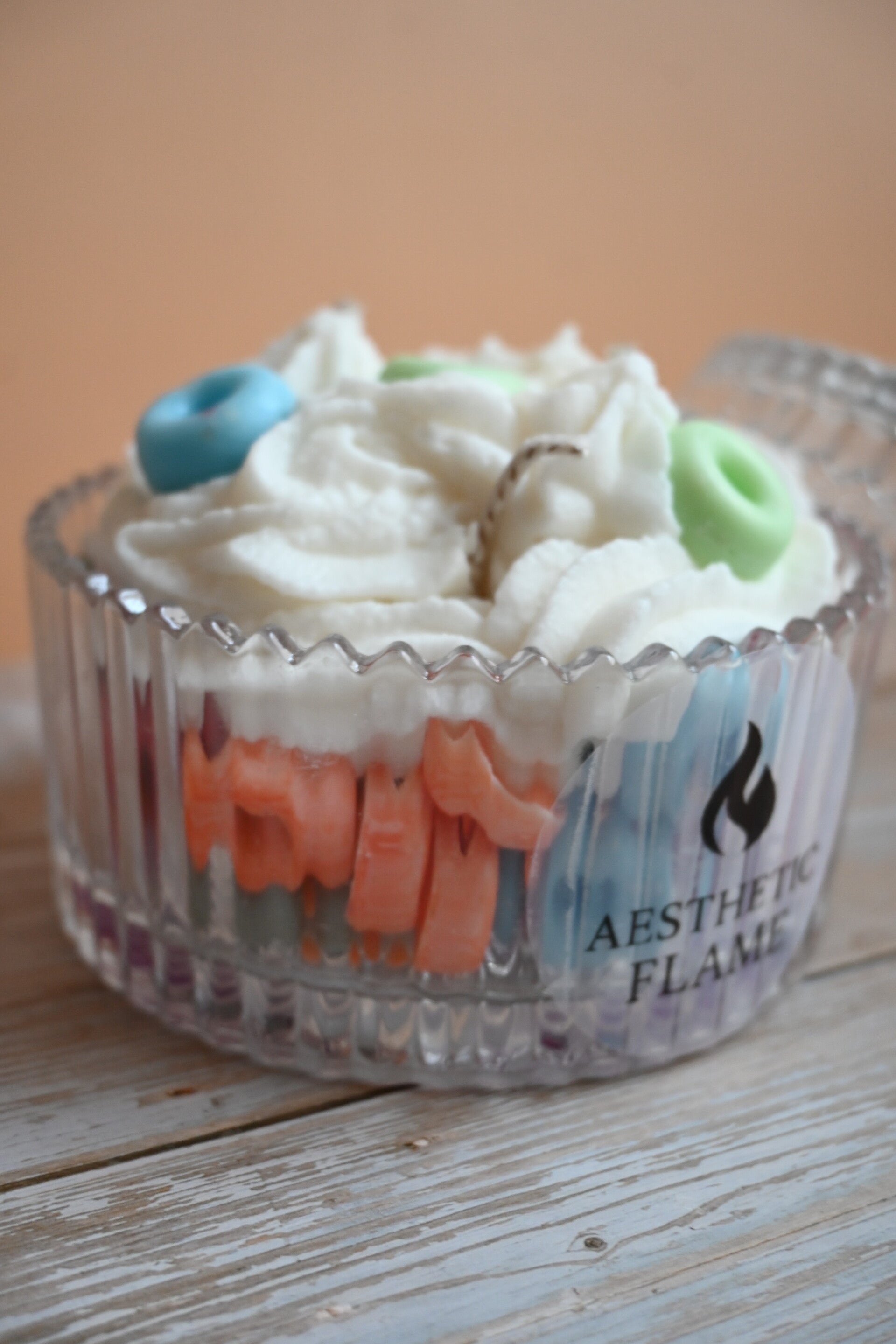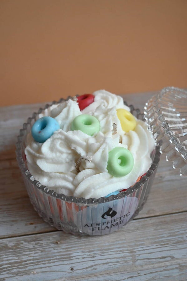 Fruity Loop Dream ist ein bunter Spaß im Glas.Mit farbenfrohen „Frootloops“ im unteren Bereich und cremiger Sahne-Optik wird sie zum verspielten Hingucker. Süß, kreativ und perfekt für alle, die außergewöhnliche Dessert-Designs lieben.